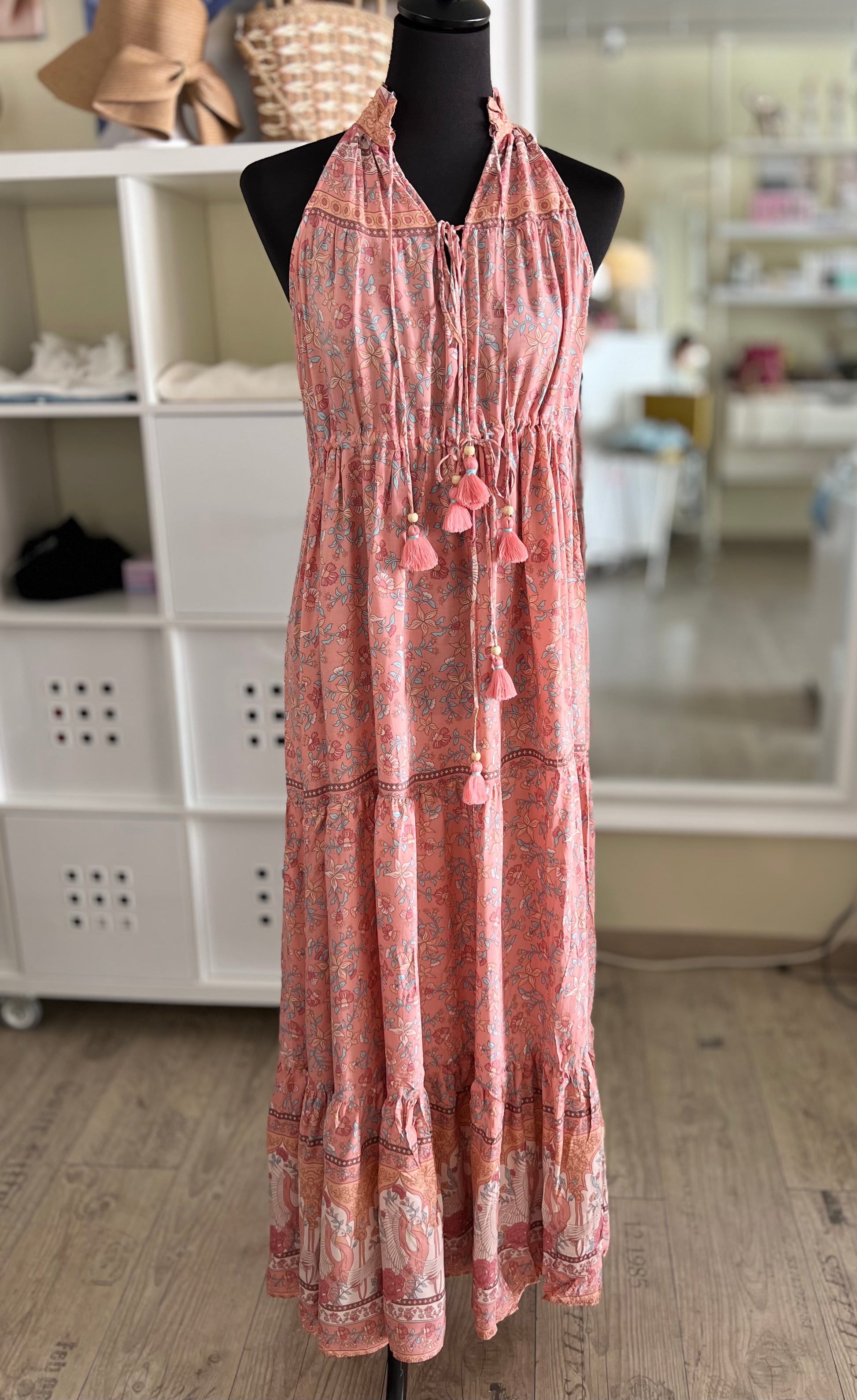 Pflanzen Sie einen Blumengarten in Ihrem Kleiderschrank mit diesem ärmellosen Maxikleid mit Bohème-Print. Die langen Sommerkleid schmeichelt der Taille und besteht aus 100% Viskose. Perfekt für einen lässigen (Sonnen)Tag🌷