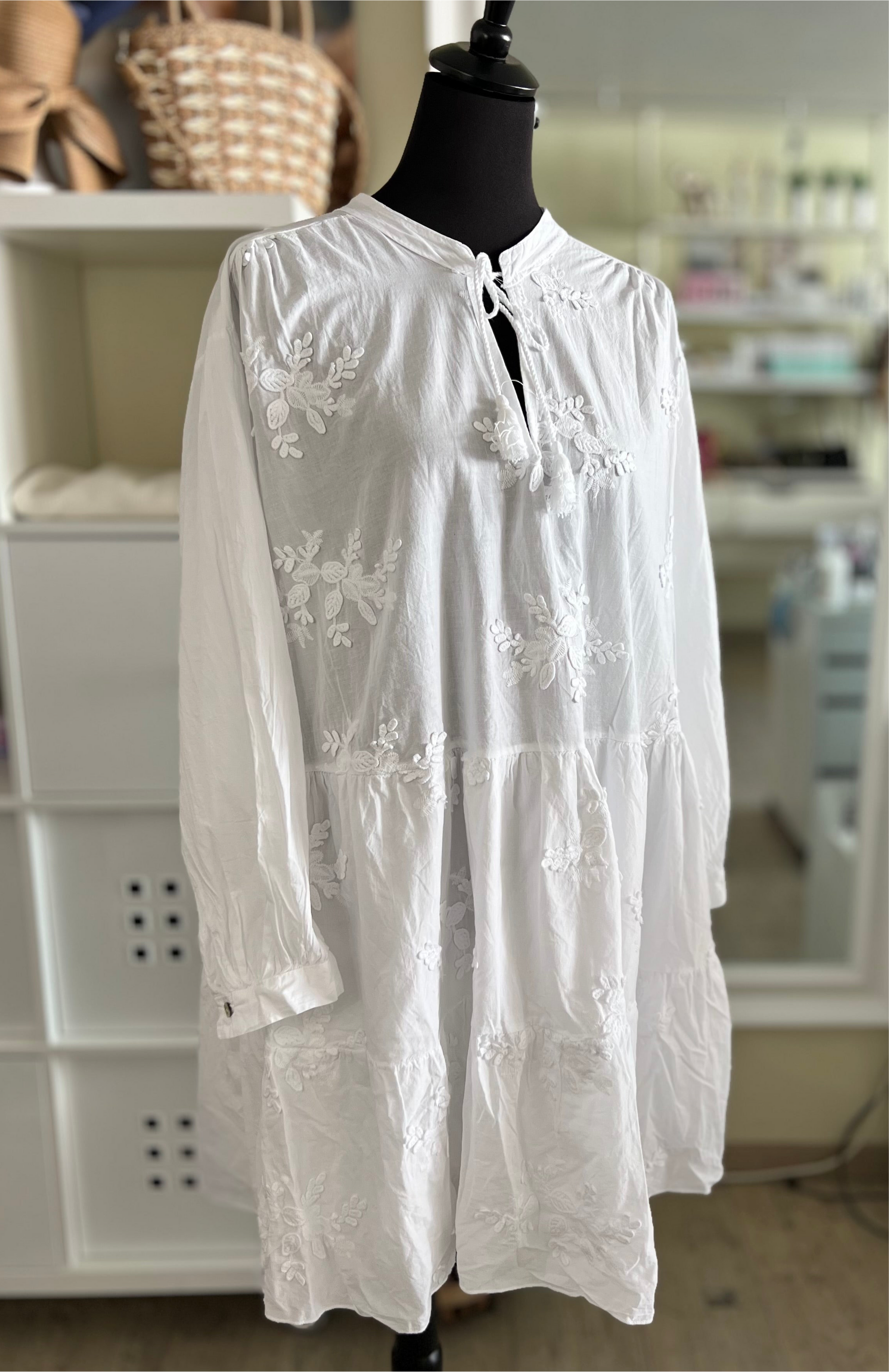 Weißes Tunika-Kleid mit Stickerei